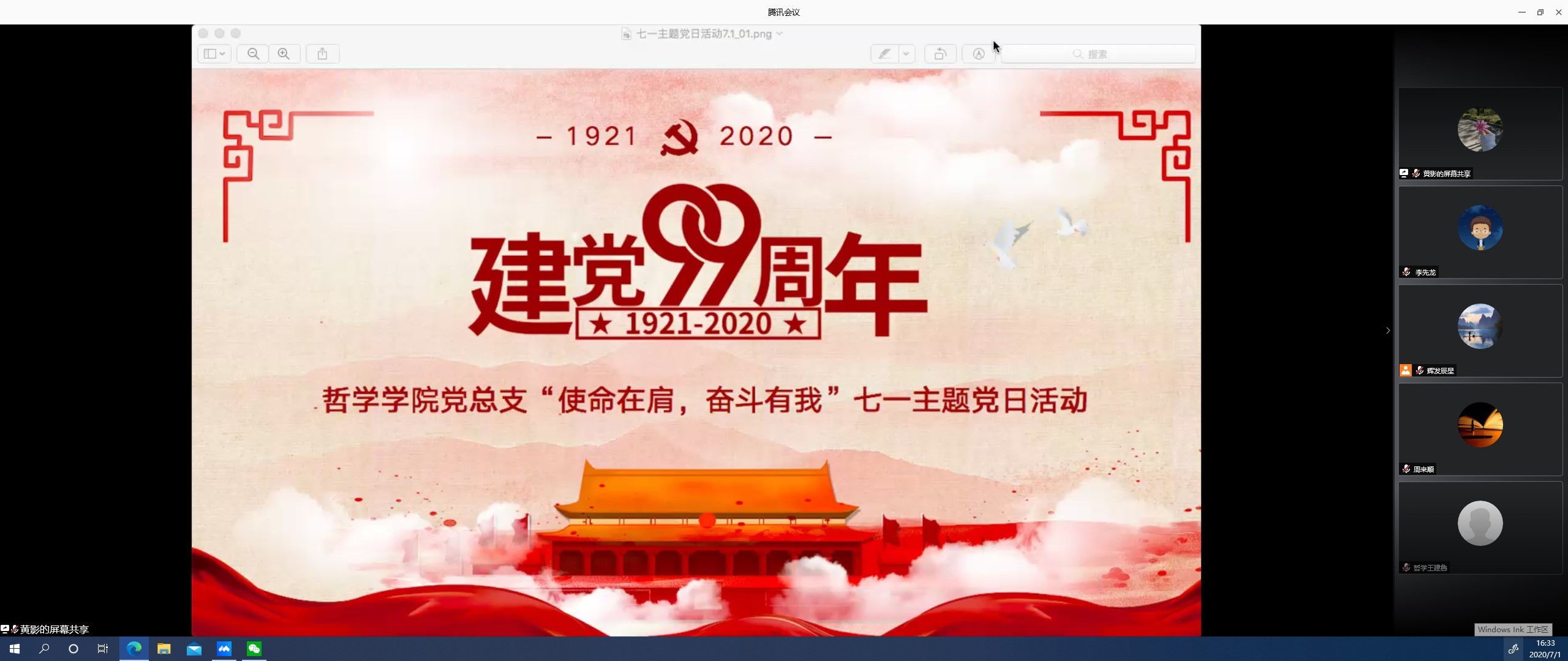 活动中,全体党员共同观看了视频短片《从红船到巨轮》,回顾了99年前党引领中华民族伟大复兴的浩荡航程。共同观看了黑龙江大学“党旗飘扬”庆祝中国共产党成立99周年表彰大会视频,引导全体党员向身边的先进集体、先进个人学习。