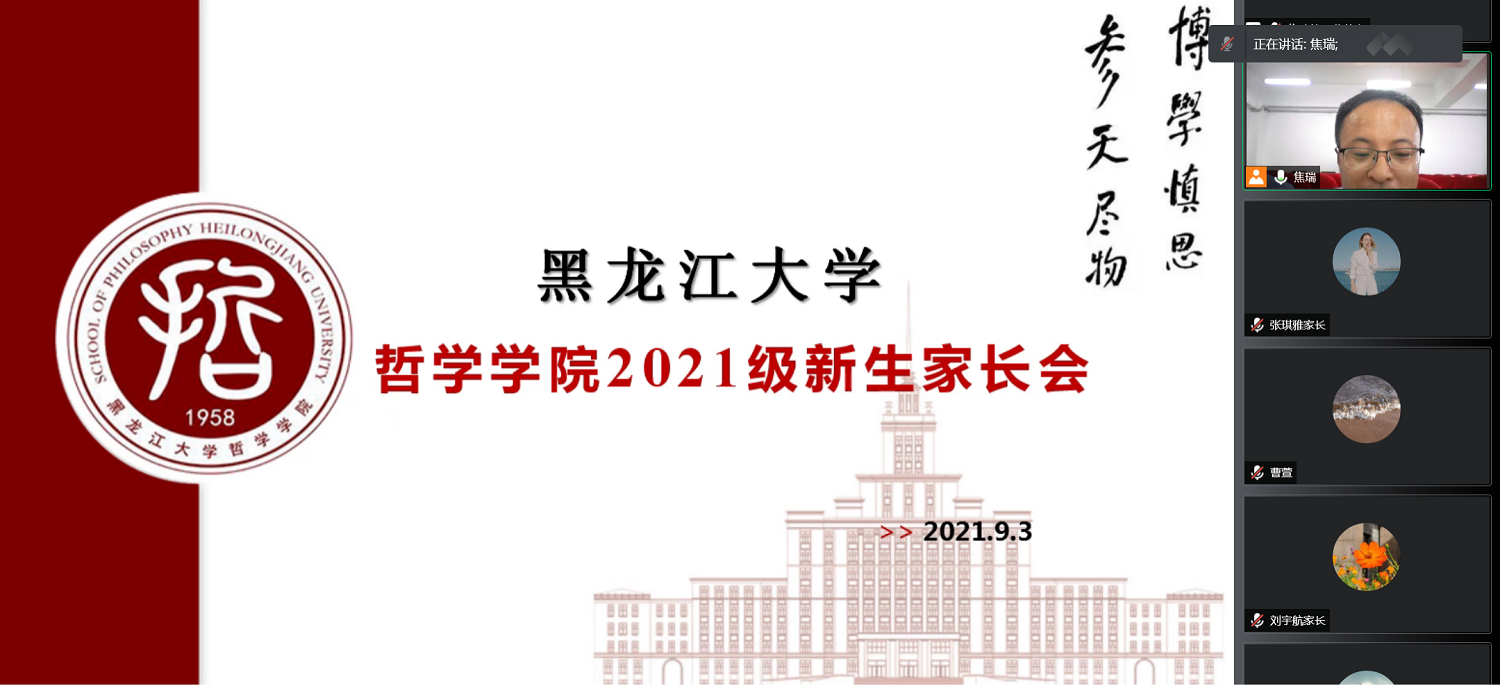 于2021年9月3日15:40,线上召开了2021级新生家长会。会议由党总支副书记张丽丹主持,党总支书记孙美晖、院长蒋红雨、副院长周来顺、副院长高来源、新生辅导员焦瑞出席会议,2021级新生家长参加会议。