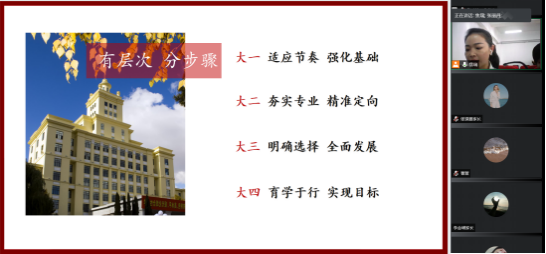 张丽丹老师从三方面发表讲话。第一,转变思想,全面发展。张老师指出,大学与高中不同,除了要重视学习,也要注重能力和人格的培养。同时,张老师指出大学学习要“分层次、有步骤”,大一以适应节奏、强化基础为主,大二以夯实专业、精准定向为主,大三要明确选择、全面发展,大四要育学于行、实现目标。第二,家校互联、合力育人。张老师介绍了“家校互联”平台的目的意义以及操作流程。第三,有效沟通、畅通信息。张老师表示,学院会关心关注每一个学生,也希望家长信任配合老师,有困惑及时沟通交流,做到“四个一”,合力育人。