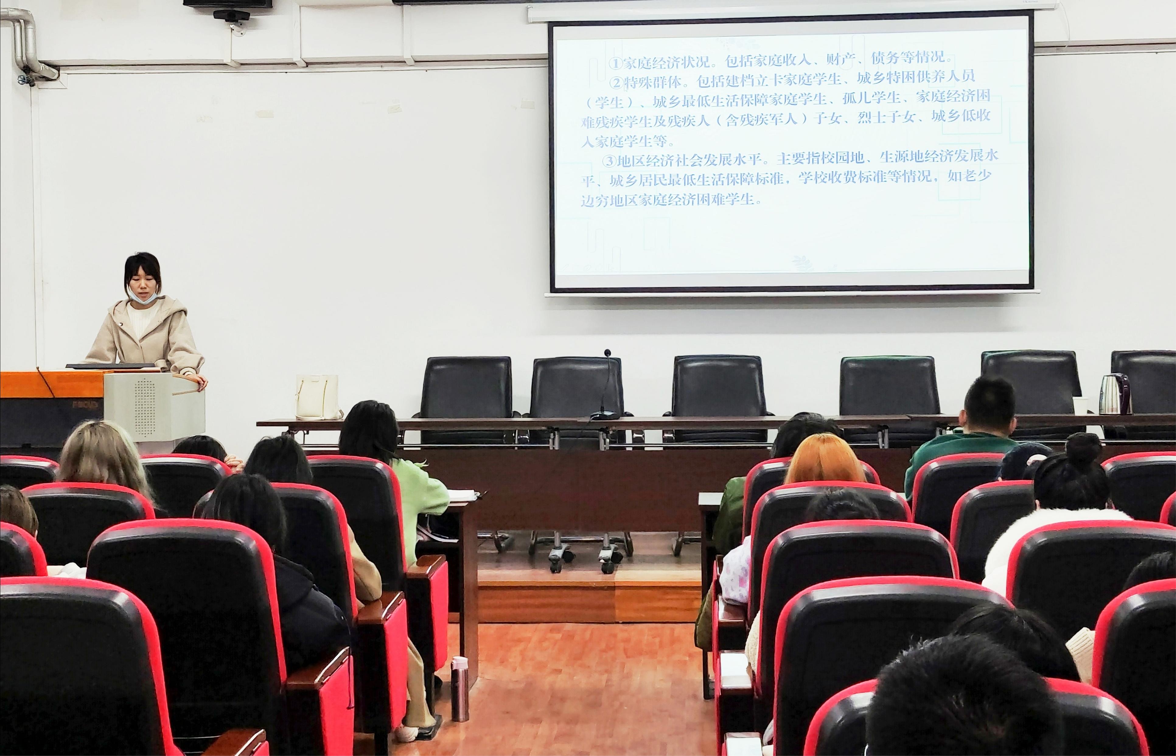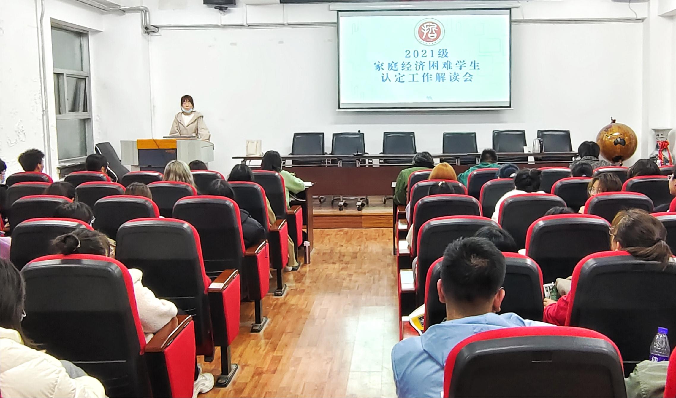 10月27日,在汇文楼937召开了2021级家庭经济困难学生认定工作解读会。本次会议由2021级新生辅导员焦瑞老师主持。在认定工作解读会上,首先,焦老师详细地向大家解读了《黑龙江大学家庭经济困难学生认定工作实施办法》,对申请方式、认定范围、困难类型、认定依据、评定流程逐一进行了细致的解读,焦老师说明了8种家庭经济困难学生类型、3种困难程度以及不能认定为家庭经济困难学生的情况。其次,焦老师说明了家庭经济困难学生认定需要准备的相关证明材料,以保证学生明晰准备哪些材料。最后,焦老师强调家庭经济困难认定涉及困难学生的切身利益,全体同学都应知晓,并且对认定学生会进行家访考察,必须公平公正、诚信守纪,申请认定同学需根据个人情况如实汇报并申请,不申请同学必须做好监督、公平评议工作,将贫困认定给真正需要帮助的学生,不让任何一个学生因贫困而耽误学业。