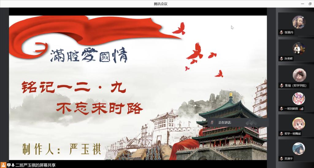 不忘初心,砥砺前行得始终。在同学们表演之后,张丽丹书记对同学们的表演提出了认可,并说新时代的青年应该铭记中国过去的历史,对一二九精神内涵深入了解,勇于担负建设祖国责任、争做时代先锋,不忘初心,砥砺前行,并贴心嘱咐同学们注意疫情防护,有困难老师将尽最大努力帮助大家解决。
