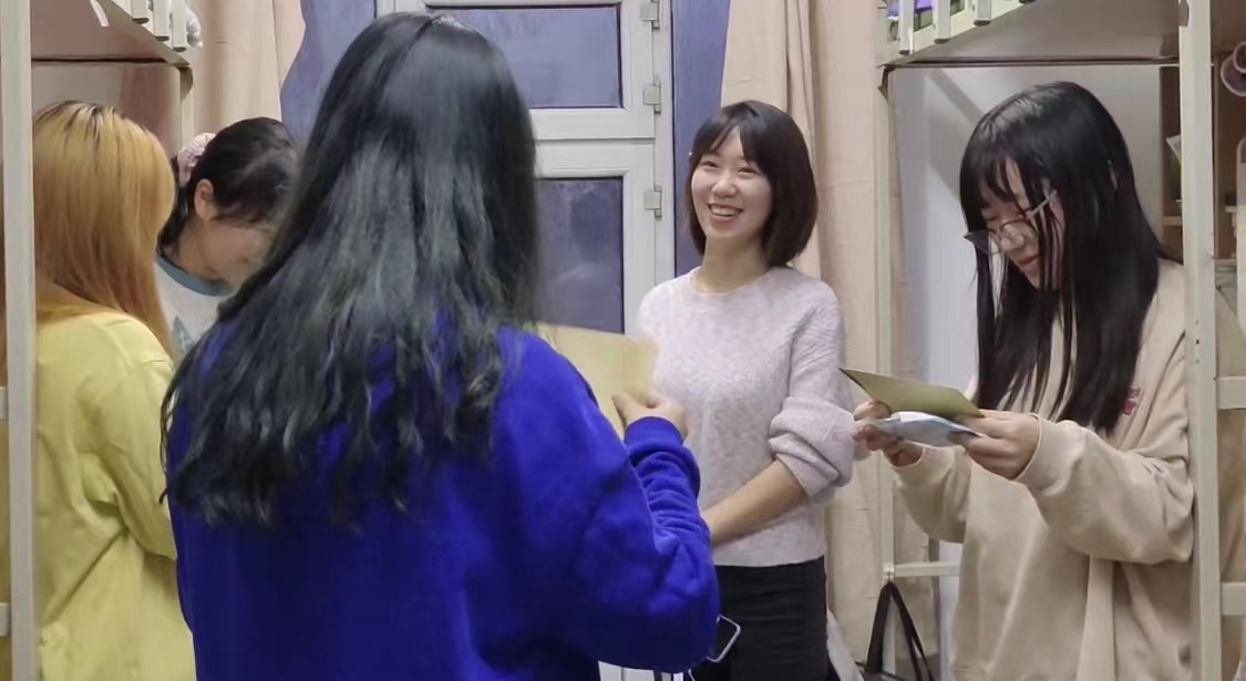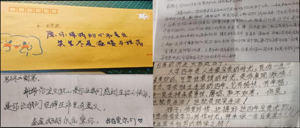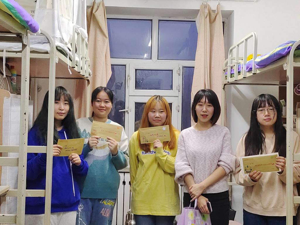 上一次相见还是夏山如碧,再奔赴相见便是白雪皑皑。背上行囊,步履坚定,坐上前行的火车,踏上征程......一转眼,21级的同学们离家在外已3月有余。当下,全校防疫,共克时艰,哲院师生,同心同德,为减少疫情给同学们带来的困扰与紧张,安抚同学们对父母对家人的思念,21级辅导员焦瑞老师开展了“走访寝室送家书”暖心活动,焦老师悄悄为大家准备了一份珍贵的礼物——父母手写信,家长们手写拍照发给焦老师,焦老师逐一整理打印装进信封。12月10日,焦老师走访寝室,为同学们送了一些防疫用品,同时,把珍贵的家长手写信递到了同学们手中,为大家带来父母的叮咛、嘱托与爱。