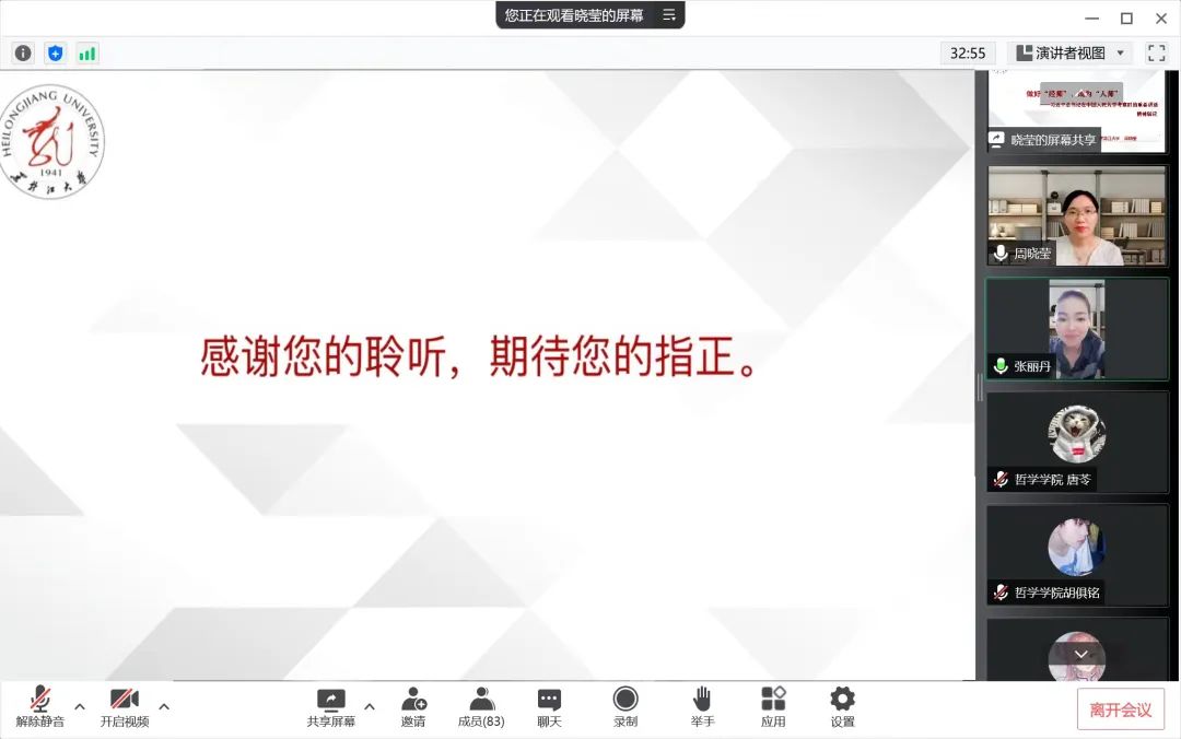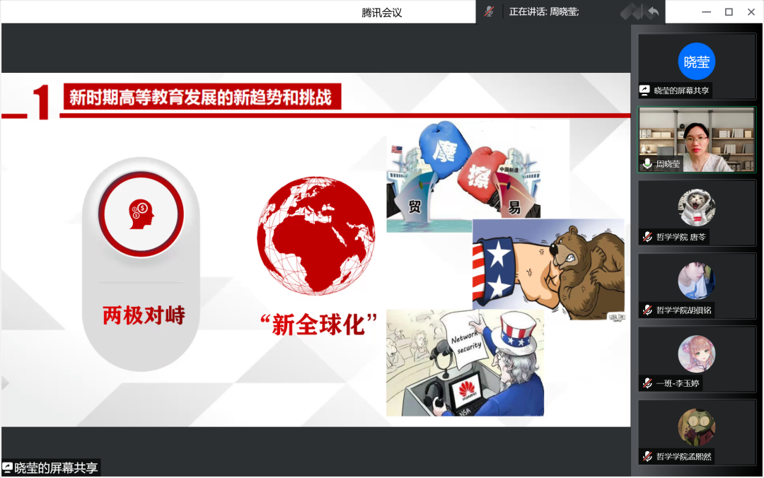 周晓莹老师担任此次讲座主讲人,党总支副书记张丽丹老师主持会议,组织员吴红英老师、正处级辅导员孙庆斌老师、团委书记张博伦老师、团委副书记焦瑞老师出席讲座,哲院学院全体党员、预备党员及入党积极分子参加讲座。