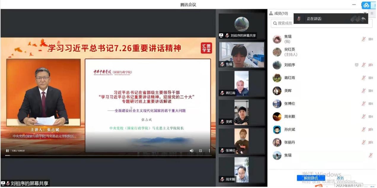 教工第二党支部的老师们在集中学习结束后对线上课程给予高度评价,认为是这是一次高端的理论引领。两位主讲人从不同的视角阐释习近平总书记发表的重要讲话,让全体党员干部深刻理解了百年大党初心不改、矢志不渝的执着和坚定,彰显了谋划复兴伟业、擘画强国蓝图的历史主动和使命担当。同时表示将继续加强对党史的学习,从中汲取智慧和力量,提高党性修养和政治素质,保持锐意进取、开拓创新的精气神,以埋头苦干、真抓实干的实际行动,在新的伟大征程上创造新的时代辉煌。