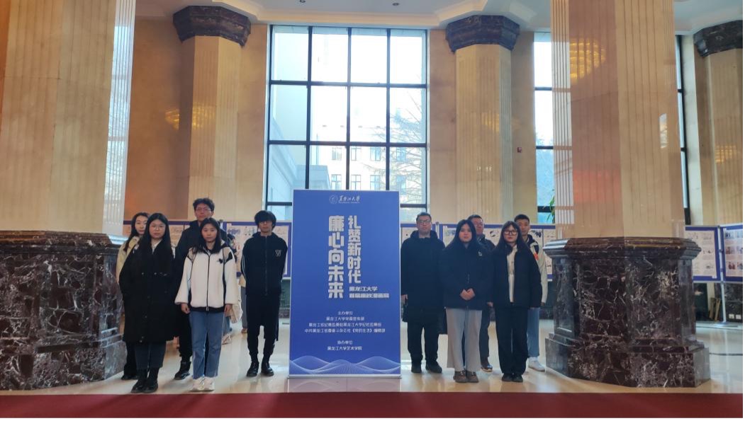 部分师生党员及部分入党积极分子,作为全校首支二级党组织参观队伍前往主楼大厅参观由校党委宣传部、省纪委监委驻黑龙江大学纪检监察组主办,艺术学院承办的“礼赞新时代,廉心向未来”黑龙江大学首届廉政漫画展,在党的二十大精神情景研学特色展区现场接受廉政文化熏陶和廉洁清风洗礼。