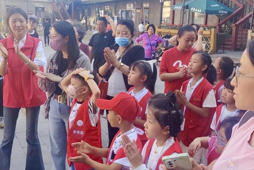 在老街区的百年建筑群里,团队成员们开展了“大娃教小娃”志愿服务活动,运用专业知识讲解这里的民族工商业创立、中华巴洛克建筑设计、爱国主义故事。在漆扇体验与教学环节中,团队成员们也纷纷展现出自己的才艺和讲解能力,为老街区带来了欢乐和活力,让这群孩子们感受到了社科文化的力量,了解家乡的发展脉搏。
