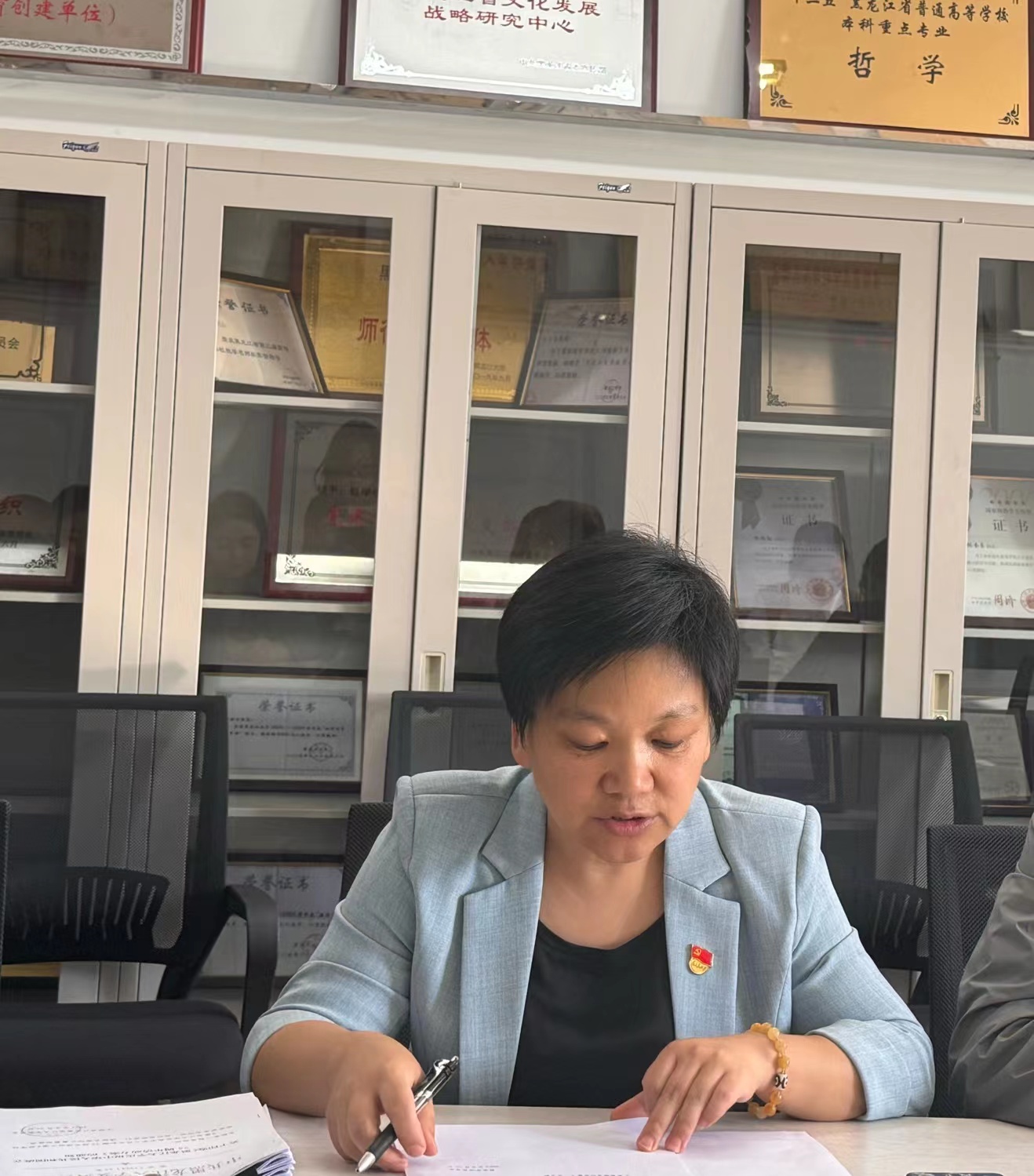 学院党总支书记孙美晖从主要做法、实际成效、存在不足和下一步工作打算四个方面对学院党纪学习教育进行了全面总结。结合学院实际情况,就如何持续巩固深化党纪学习教育成果,做好党纪学习教育的后半篇文章,将党纪学习教育常态化、长效化抓实落靠进行了具体部署。对下一步工作提出了四点要求:第一是聚焦《中国共产党纪律处分条例》,依托学院“廉政小课堂”,构建常态化学习机制,坚持严在平常、抓在经常、融入日常;第二是强化学思用相结合,切实增强学院师生遵规守纪的政治自觉和行动自觉;第三坚持从严从实改进作风,坚持党性党风党纪一起抓,以学正风,弘扬清廉之风;第四是脚踏实地再创佳绩,以贯彻落实党的二十届三中全会精神和省委十三届六次全会精神为抓手,以具体行动持续推进学院党纪学习教育。