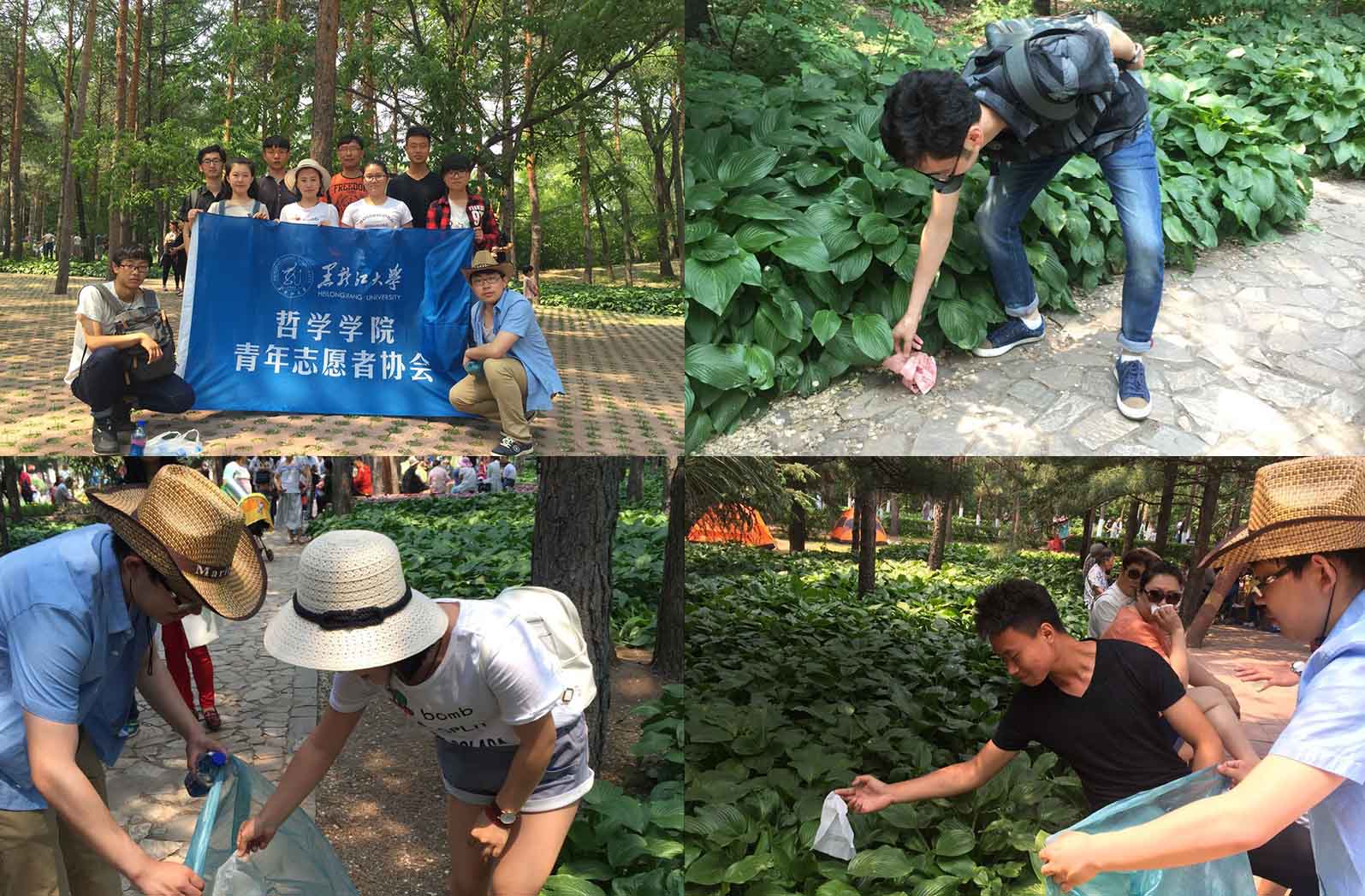 到达森林公园后,志愿者们首先进行了分组,不同的小组从不同的路线开始了清扫活动。志愿者们着重清扫了游客集中的野餐区和娱乐设施附近,将散落在地上的食品包装袋、野餐布等垃圾分类收集起来并送到了公园的垃圾回收处。在清扫过程中,许多游客在志愿者们的影响下也加入到了义务清扫的行列中,他们不仅主动将自己周围的垃圾收集起来,还为志愿者们提供了小铲子、塑料袋等清扫工具。虽然只是简单的帮助,但志愿者们却十分感谢游客们的热情配合。很多游客十分赞赏志愿者们乐于奉献的精神,还有的游客主动和志愿者们合影留念。在结束了两个多小时的清扫后,志愿者们围坐在一起交流志愿服务的心得体会。2012级的毕业生们和学弟学妹们分享了自己四年志愿服务经历中的趣事和难忘的瞬间,他们希望用自己的亲身经历给刚刚投入志愿服务行列的学弟学妹们提供一些帮助。听完了学姐学长们的故事,在场的很多志愿者都回忆起了第一次参加志愿服务活动时的场景,他们很感谢学姐学长们当时手把手地传授经验,耐心地讲解活动中的细节。正是在这样细致入微的帮助下,一批又一批的哲院青年志愿者成长了起来,哲院青协“乐于奉献、不怕吃苦”的志愿服务精神也得到了传承和发扬。在大家的欢声笑语中,本次义务清扫活动圆满结束。