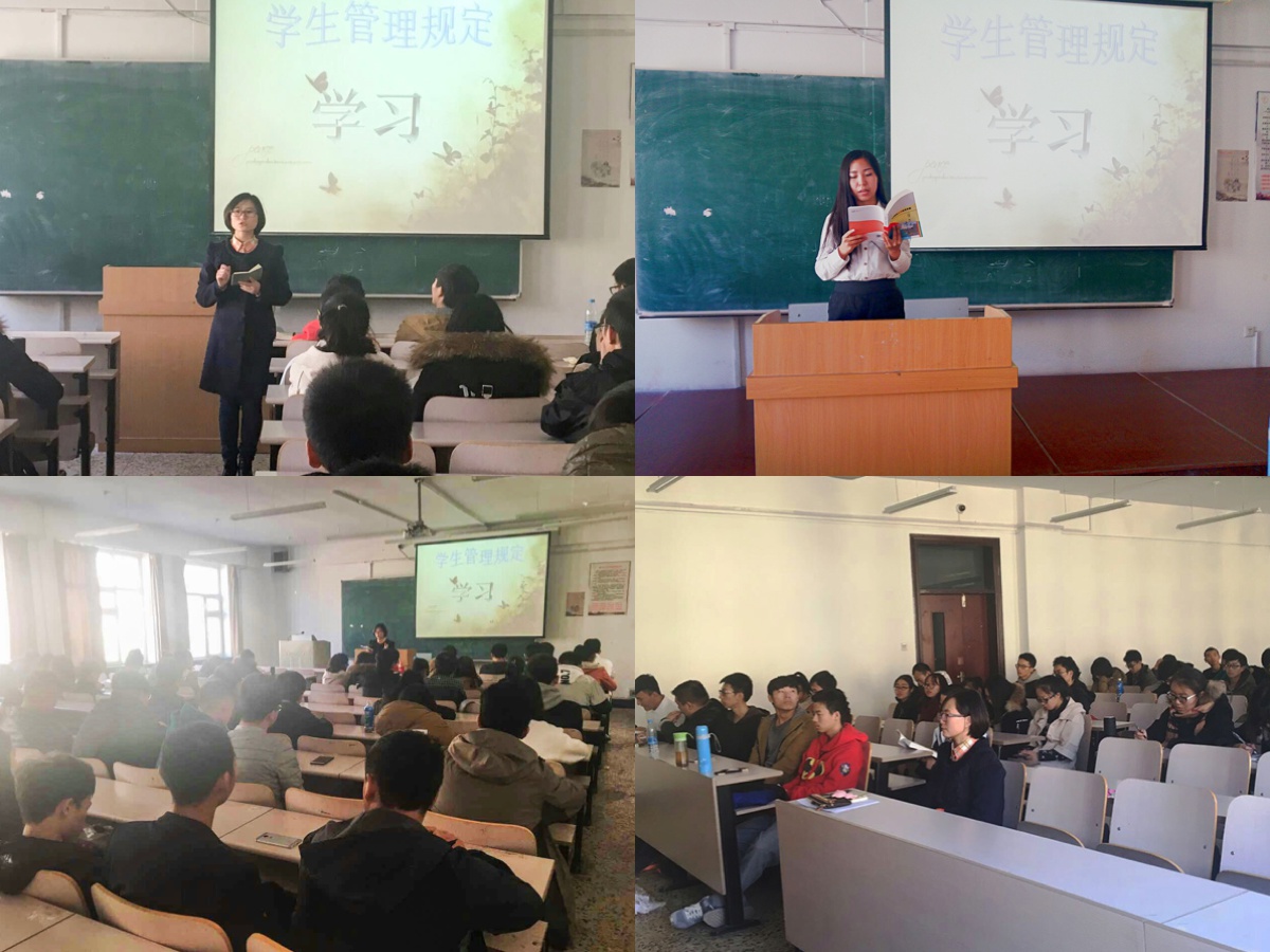 随后,黄老师着重强调了《黑龙江大学学生管理规定》的重要性,希望同学们能够通过集中学习和自主学习的方式,全面了解《规定》的内容,并在今后的学习生活严格遵守。接下来,黄老师就学籍管理、寝室管理、奖励与惩罚进行了详细解读,重点强调了诚信考试重要性以及考试违纪的严重后果,希望同学们认真严肃的对待大学中的每一场考试,给自己一份满意的答卷。