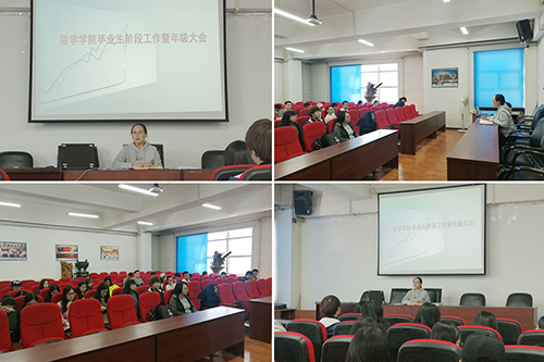 2014级毕业生阶段性工作暨年级大会于汇文楼937室顺利召开。会议由学院团委书记、辅导员黄影老师主持,2014级全体同学参加了会议。