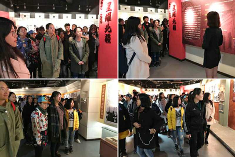 团委副书记、辅导员张博伦老师带领全体2017级新生参观了学校校史馆。