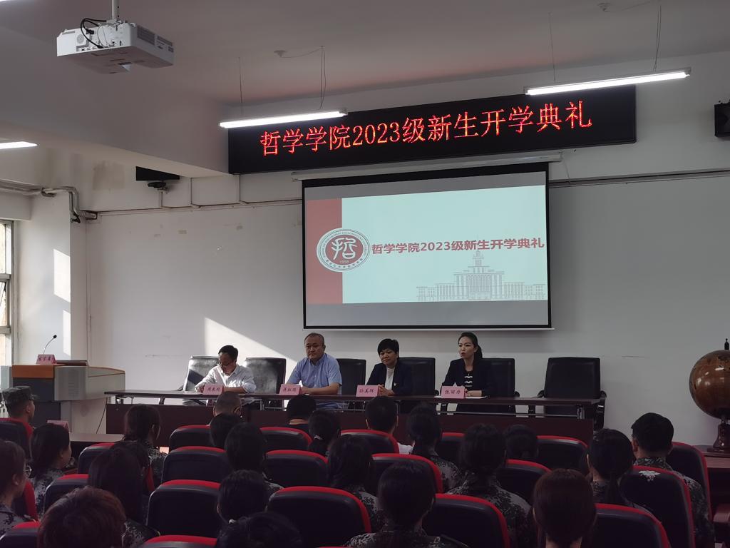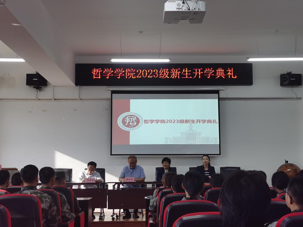 开学典礼在雄壮的国歌声中开幕。随后,2023级哲学专业3班侯加乐同学代表全体2023级新生发言。侯加乐同学表示很荣幸能够进入自己理想的大学和专业学习。他表明选择一条路就要切实努力去做,在今后的学习生活中,希望同学们打牢知识基础,慎思明辨,爱智创新,期待在哲学的海洋里畅游翱翔,走出“温室”,不懈奋斗,砥砺前行。