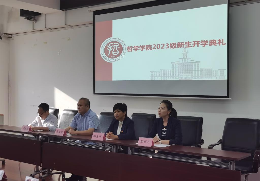 党总支书记孙美晖、院长蒋红雨、党总支副书记张丽丹、副院长周来顺、2023级辅导员孙庆斌、科技哲学教研室主任林菲、新生班级导师张凯、潘麒羽以及2023级全体新生出席本次会议,大会由学院党总支副书记张丽丹主持。