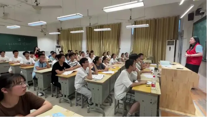 团队成员郭若言以我校发展历程为切入点,向同学们讲述我校根于延安,源于抗大的红色血脉,同学们详细了解了我校历史沿革、发展历程、办学特色、校友风采等情况,感受我校历史路程与文化底蕴。