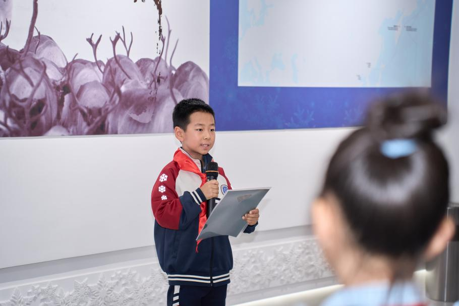 刘振怡教授带来的专题讲授,为孩子们打开了理解冰雪的新维度。刚刚结束2025年亚冬会服务工作的黑龙江大学学生志愿者赵子瑶,则带来了赛场一线的青春故事。她用自己的亲身经历,向弟弟妹妹们生动诠释了冰雪精神。活动的最后,清滨小学的齐绍博分享了本次研学感悟“以前滑冰只为快乐,今天才懂,冰场凝结着城市记忆,我们的每次飞驰都在续写新的篇章。”
