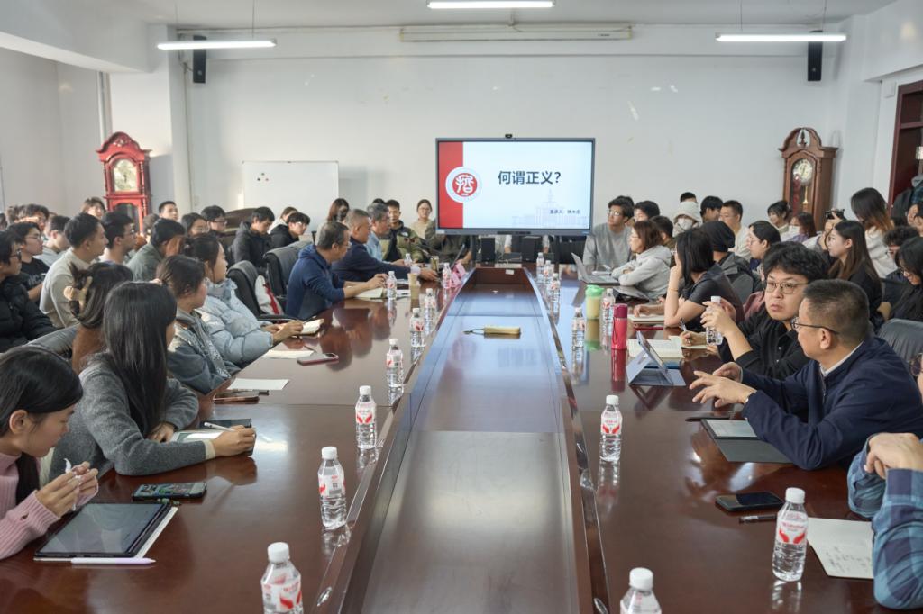 学生们针对分配正义、正义的标准、马克思主义正义观、效率和公平等问题进行提问,姚老师逐一为同学们答疑解惑,讲解了马克思主义视角下正义研究的特点与意识形态属性,与同学们就正义具有时代性以及学术应包容多元理论达成了共识。