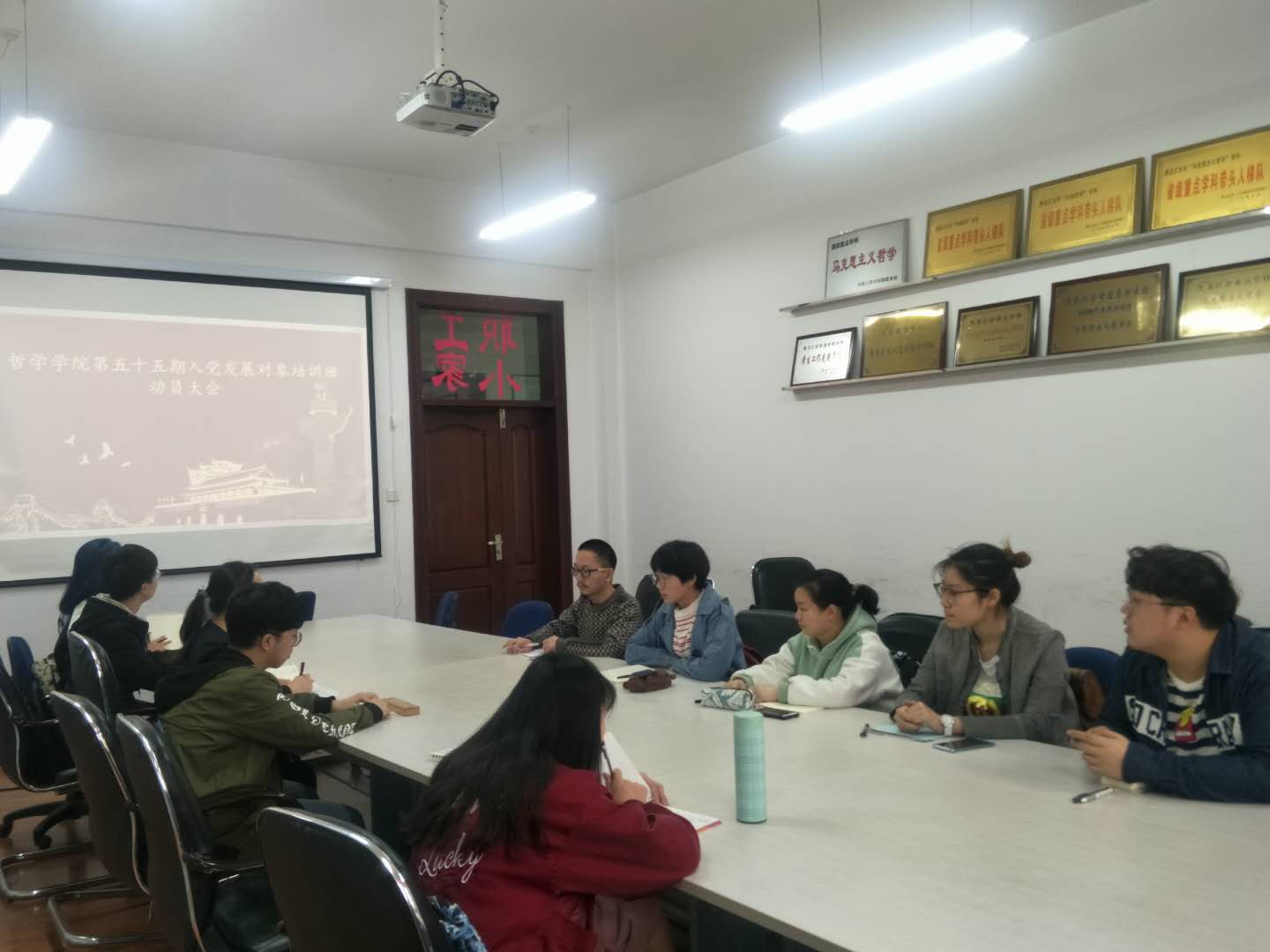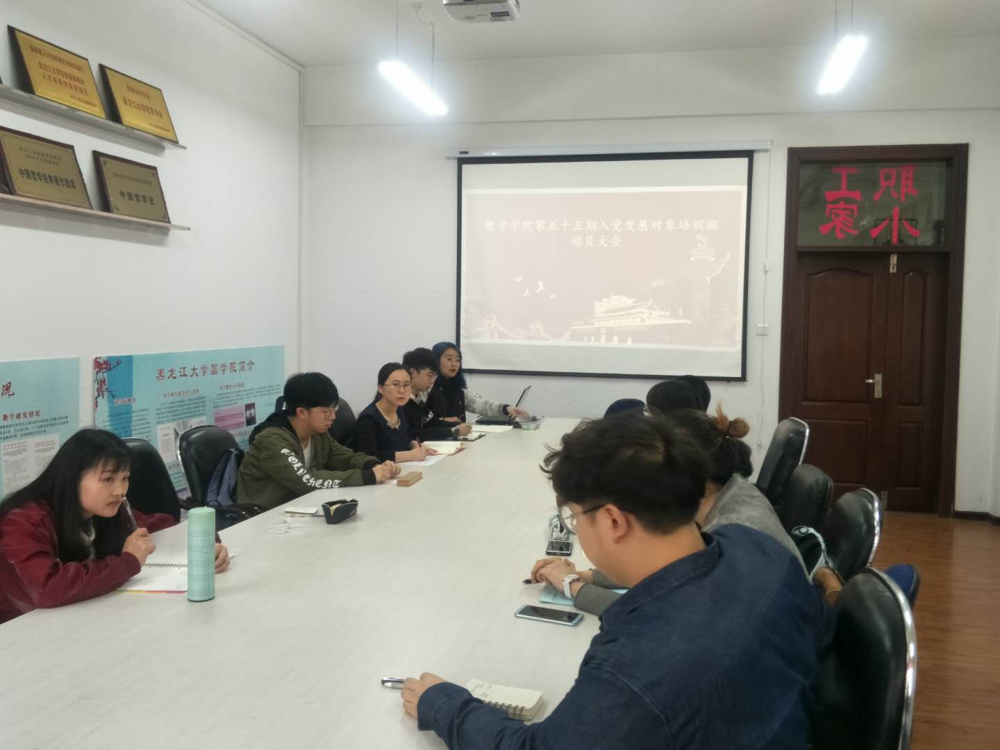 于汇文楼922召开了第五十五期入党发展对象培训班动员大会。会议由学院党总支秘书、团委书记黄影老师主持,团委副书记张博伦老师和全体培训班成员参加。