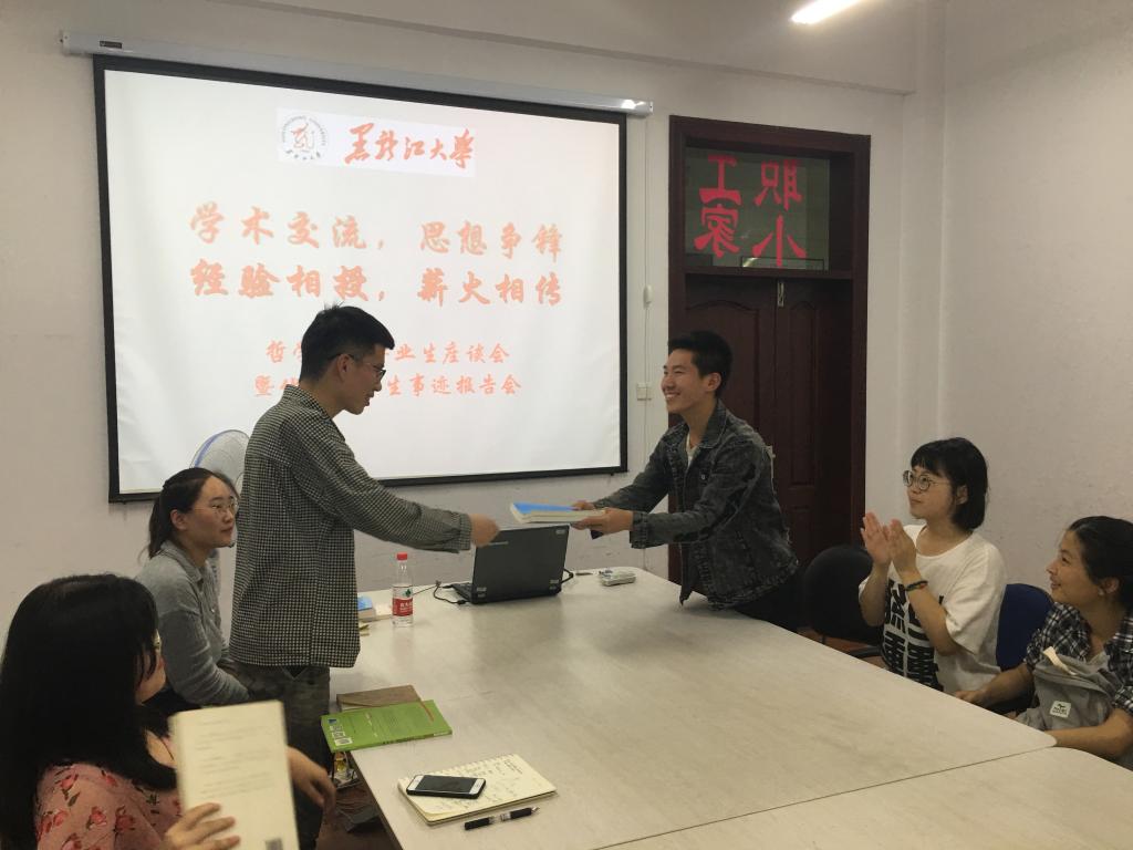 随后,报告会的主讲者陈洋、都新豪、张宸晟、袁传志等四名2018届优秀毕业生代表,分别与在座的学弟学妹分享了大学四年成长成才的心路历程。陈洋同学分享了她的学习和保研准备相关经验,重点向大家介绍了如何准备保研的笔试面试,为大家讲解了一些实用技巧;都新豪同学主要为大家分享了外国哲学的一些学习经验,以及如何获取考研信息和选择考研院校的前期准备;张宸晟同学为同学们讲解了专业基础课程的学习方法,以及如何高效复习备考的方式方法;袁传志同学结合自身学生干部经历,主要分享了如何协调处理好学生工作和其他事情与学习之间的关系问题。四位优秀毕业生在校期间学习成绩优异,各方面表现突出。四位同学均结合自身实际向大家分享了各自的经验,从中传递出的共同品质是持之以恒、不懈奋斗、心中有梦想、懂得感恩回报,正是这些可贵的品质让他们变得如此优秀。报告完毕后,毕业生代表们和同学们进行了交流互动,对同学们的一些疑问进行了耐心细致的解答。最后,四名优秀毕业生代表向低年级学弟学妹赠送了相关专业书籍,勉励学弟学妹努力学习专业知识,培养专业素养,将炸金花单机