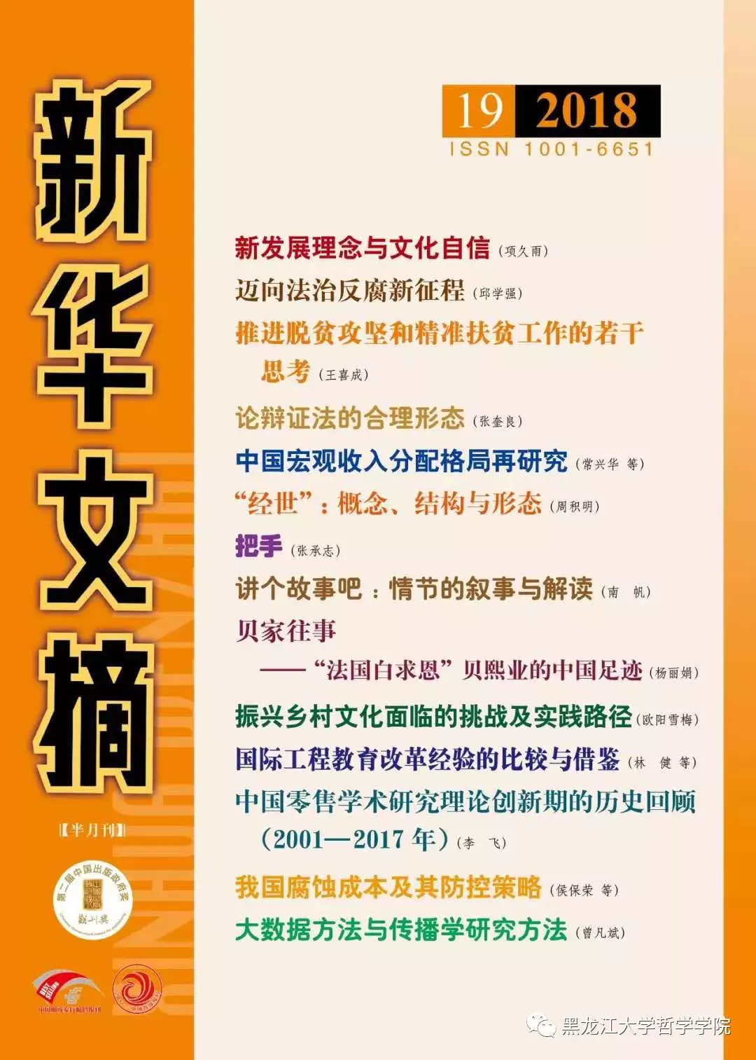 《新华文摘》作为大型理论性、综合性、资料性文摘类权威期刊,以其思想性、学术性、权威性和可读性享誉海内外,是我国最具影响的哲学社会科学文摘类杂志。其转载和摘编的哲学社会科学领域的新观点、新资料、新方法和文艺佳作的学术价值不言而喻。此次,《论辩证法的合理形态》一文的全文转载已是张奎良教授的文章,第23次被《新华文摘》全文转载或论点摘编。