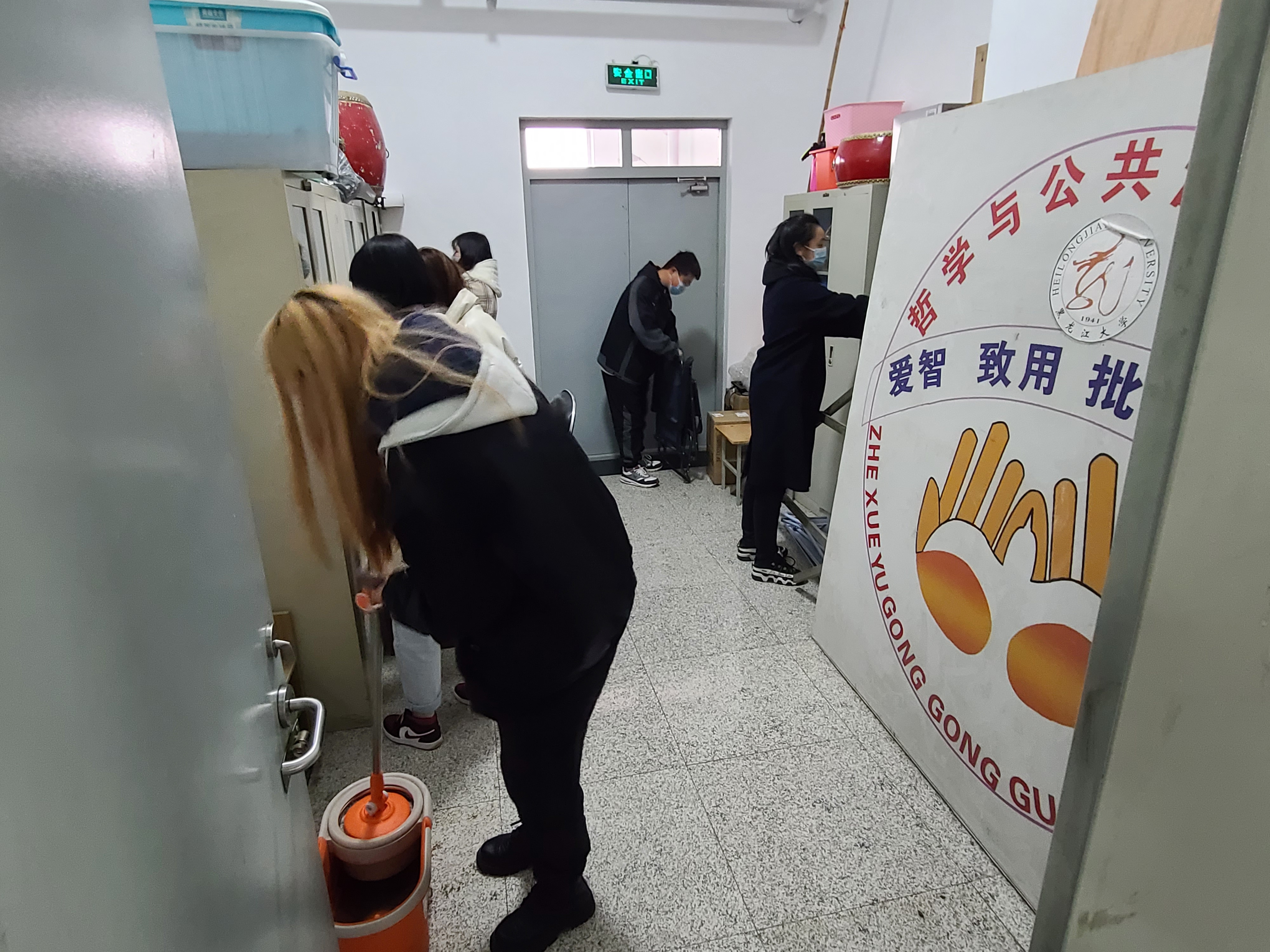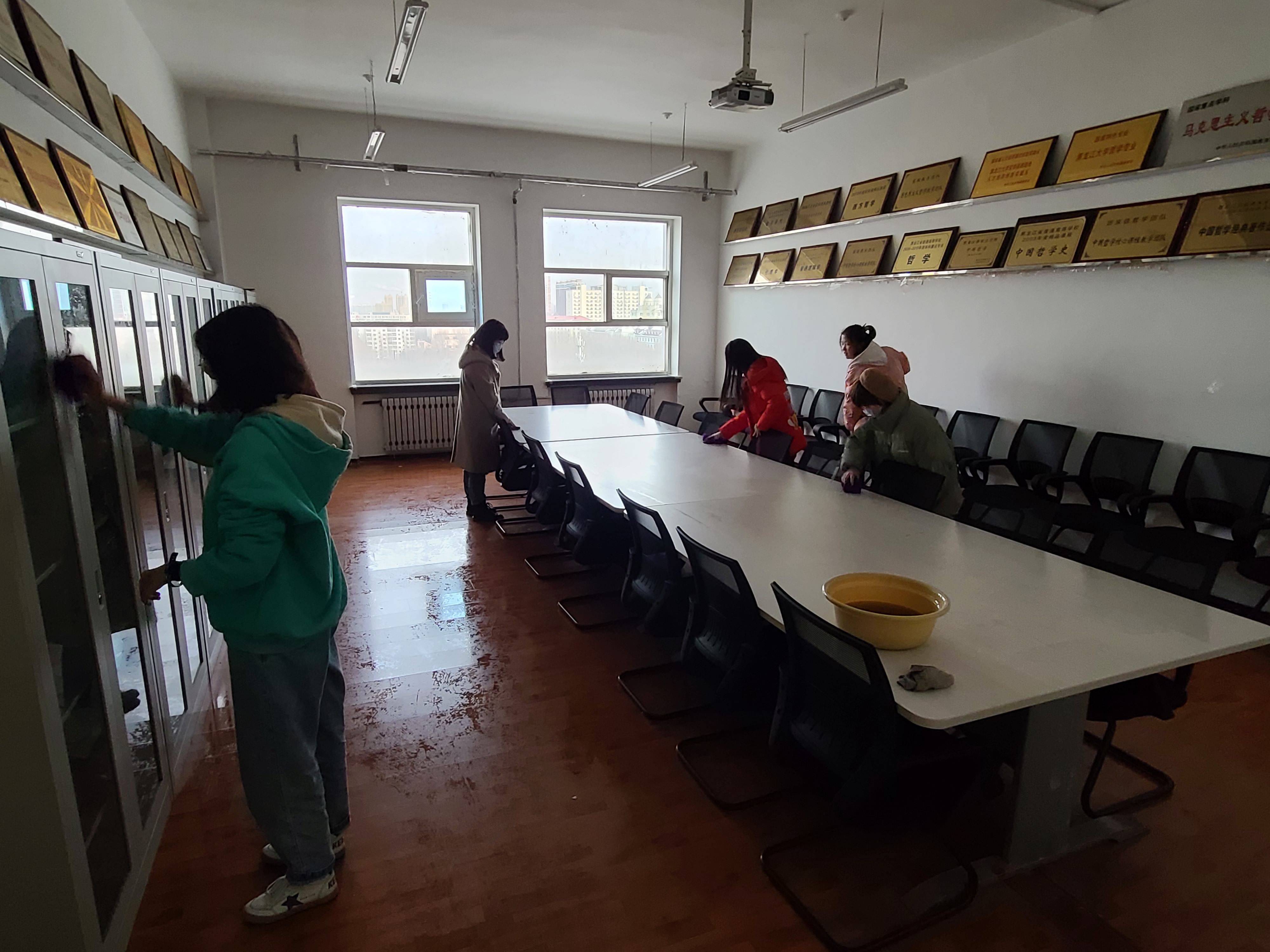 在活动中,主要组织学院青年志愿者针对汇文楼部分教室办公场所的卫生进行了清洁工作,同学们认真拖地扫地,将杂物分类码放整齐,充分表现了炸金花单机