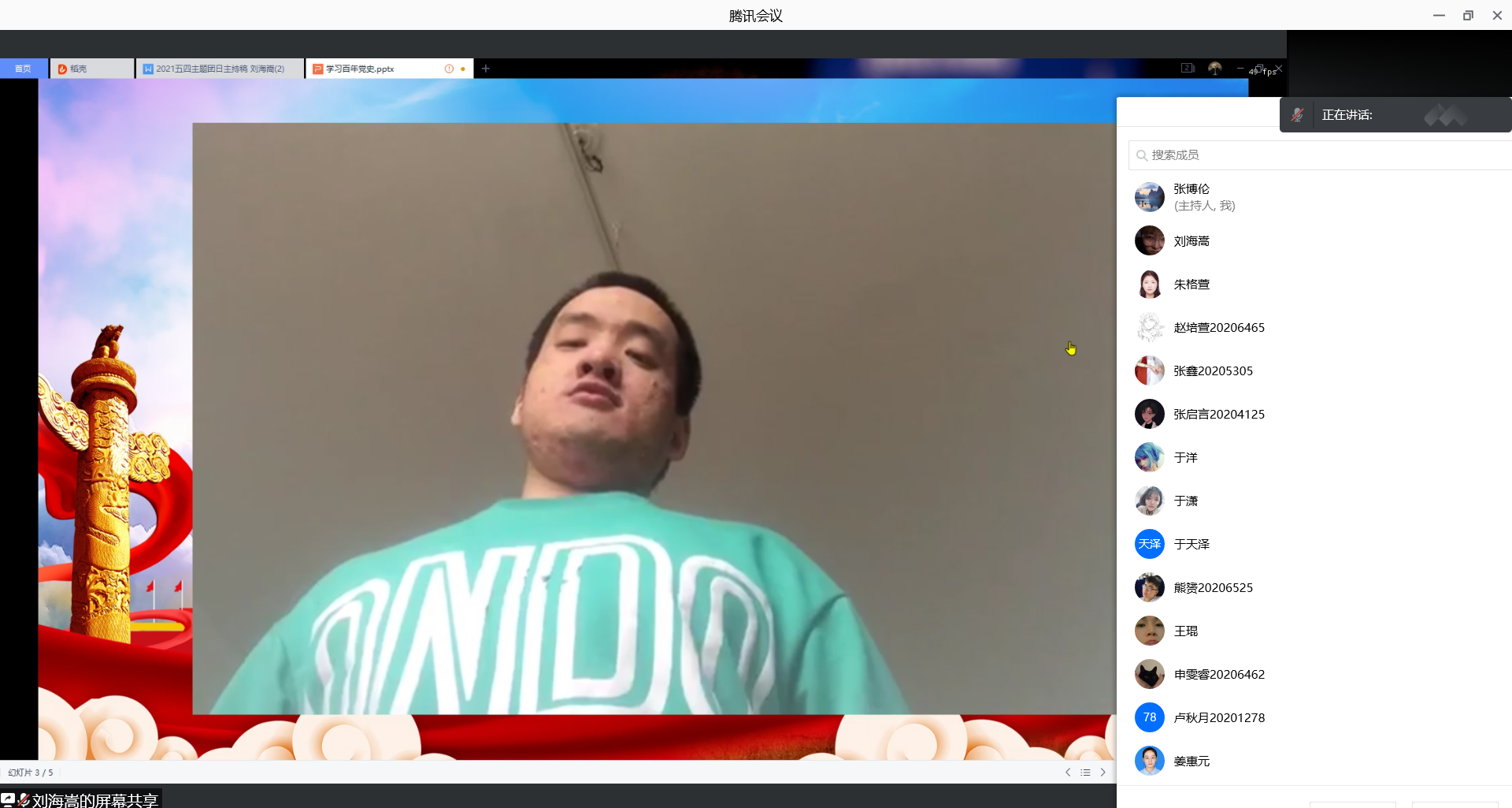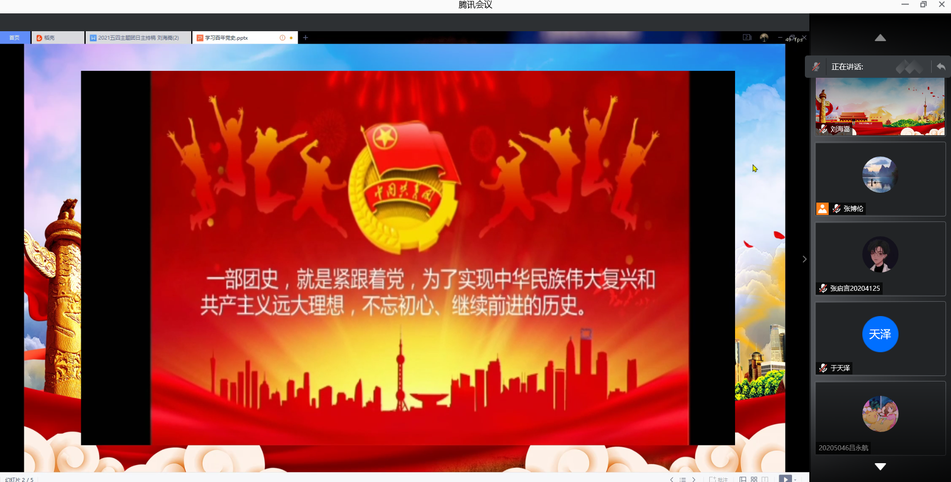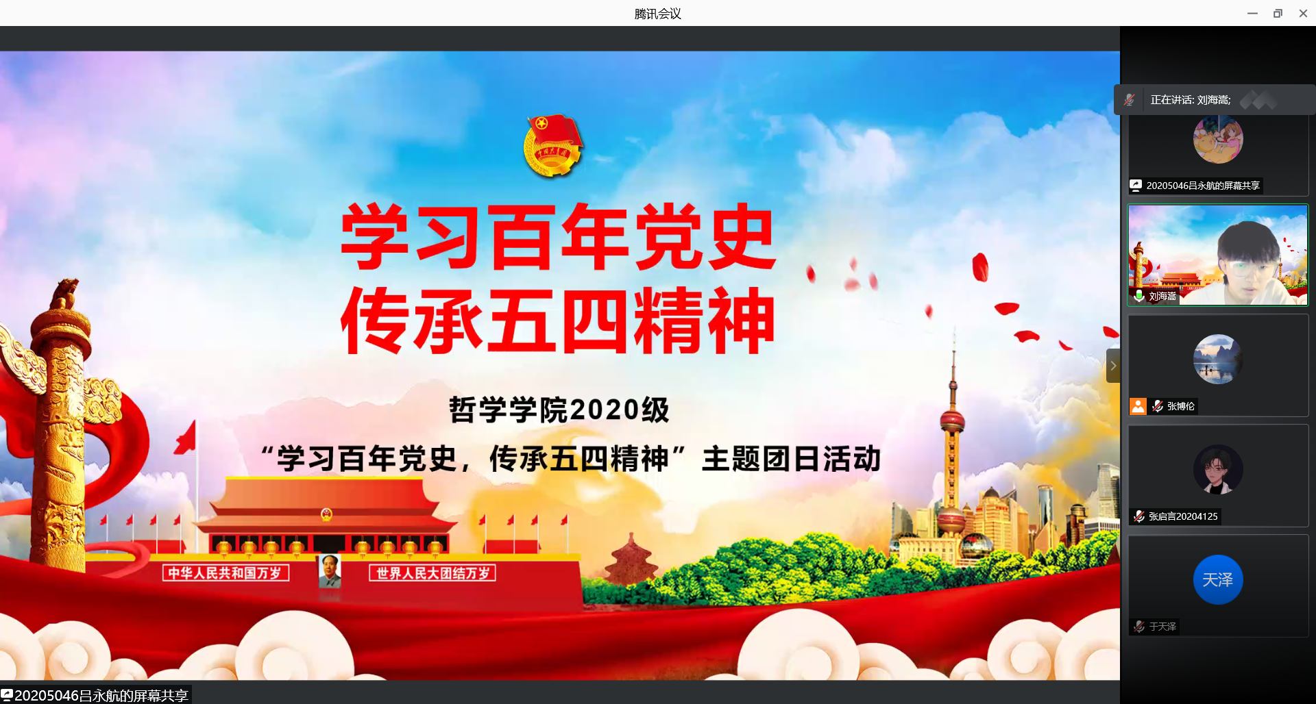 依托腾讯会议平台举办了2020级“学习百年党史,传承五四精神”主题团日活动。学院团委书记、辅导员张博伦出席活动,学院2020级全体学生参加。
