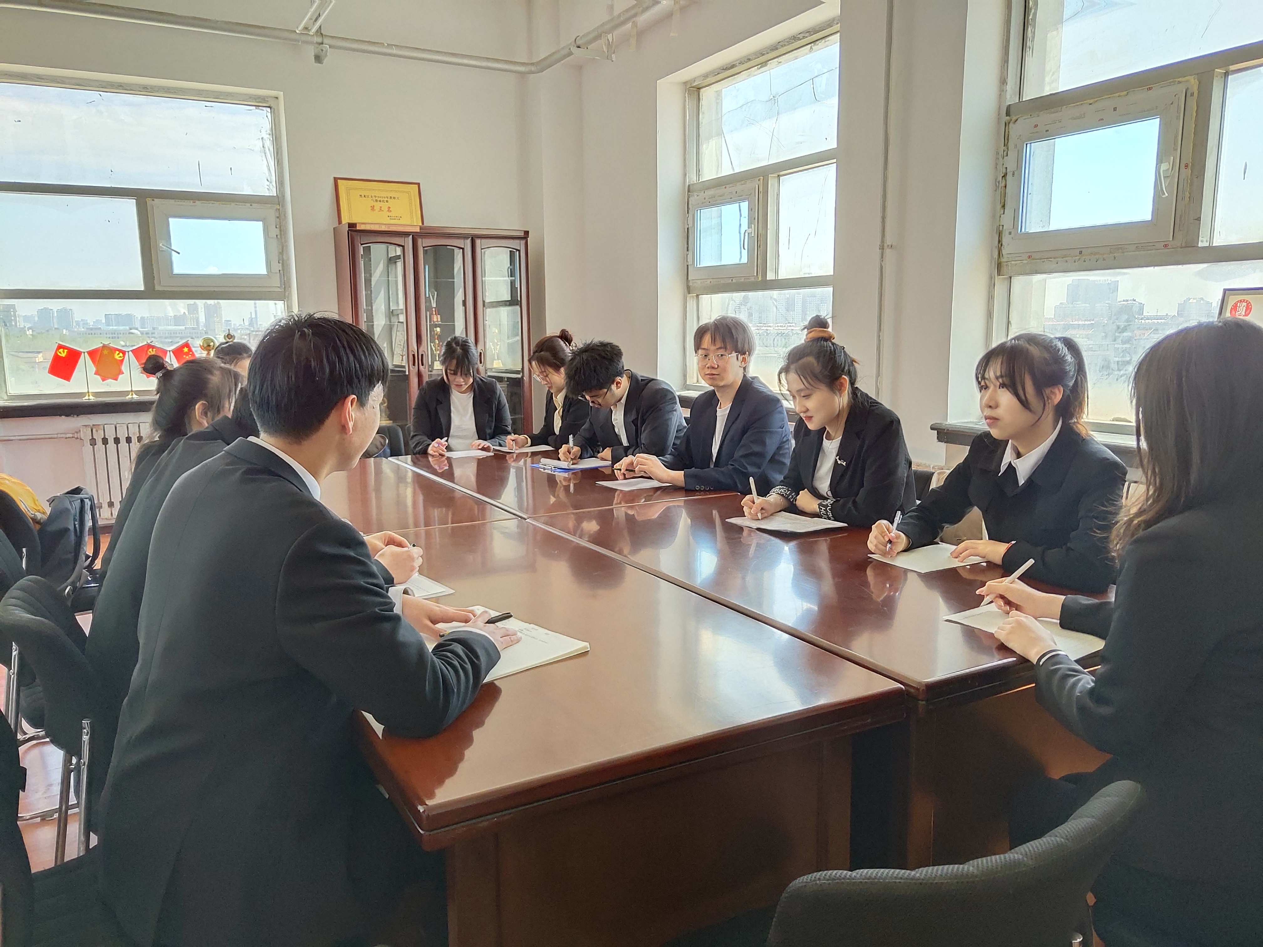 第六十三期党员对象培训班在汇文楼916室开展小组讨论。