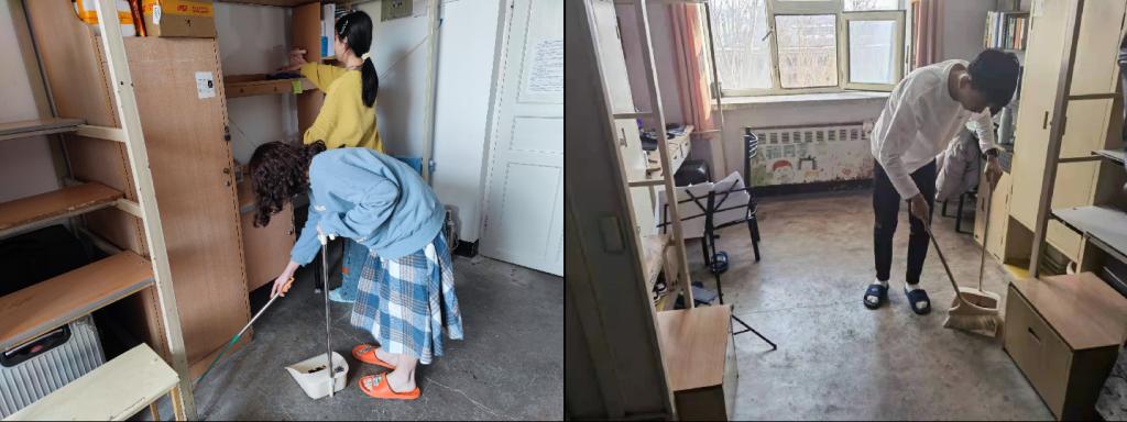 第二部分勤劳动手,提高劳动意识。随后,班长团支书等班干同学发挥带头作用,同学们积极投入到寝室卫生打扫活动中去。扫地、拖地、擦窗台、收拾桌椅,同一寝室的同学们积极配合,做好分工,合理有序地将寝室卫生做到干净整洁。同学们始终坚持自己动手,在寝室打扫过程中也不缺少同学们的欢声笑语,在劳动的同时友谊也在不断升温。