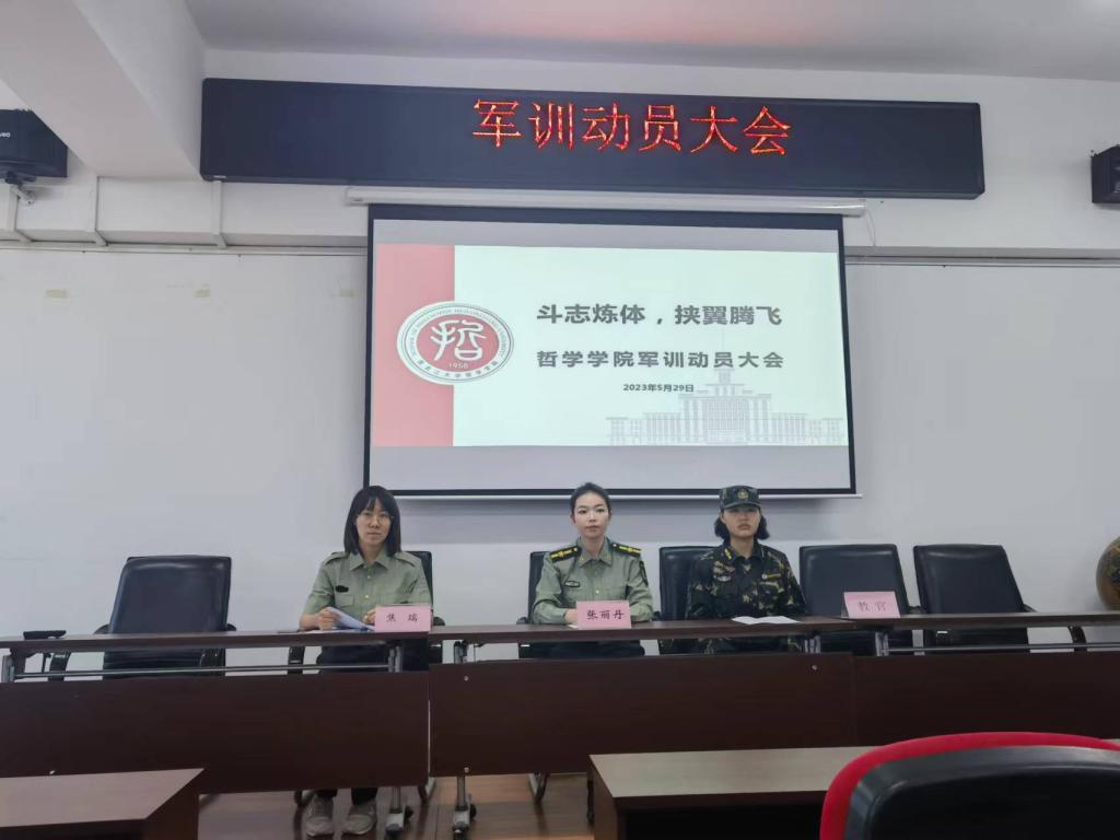 党总支副书记张丽丹老师发表讲话,首先代表学院向参训同学致以亲切的问候,对全体哲院学子寄予了厚望。张老师从以下三点向全体参训学生提出希望与要求:第一,听从指挥,服从命令。希望参训学院以一个军人的标准严格要求自己,尊重教官,服从命令,一切听从指挥;第二,吃苦耐劳,艰苦奋斗。即将开始的军训为同学们提供了一次磨炼意志、锻炼品质、加强纪律的良好机会,希望全体学生发扬吃苦耐劳、艰苦奋斗的革命精神;第三,团结友爱,互帮互助。全体参训同学要团结互助,共同提高,形成争创一流的良好军训氛围。张书记表示,希望同学们能够正确认识军训的目的和意义,克服困难,积极参训,通过军训充分磨练自己,培塑家国情怀,未来成为建设社会主义现代化强国的主力军。同事,张老师强调,大学生参加军训是全面贯彻《国防教育法》和推进学生素质教育的重要举措,希望同学们在军训中认真投入,严守纪律,在教官的引领下,发挥出哲院学子的优良作风,磨炼意志品质、砥砺修身笃行,在属于自己的战场上舞出意志、舞出坚强,最终奔向梦的远方!努力打造一个具有强大凝聚力的战斗集体。