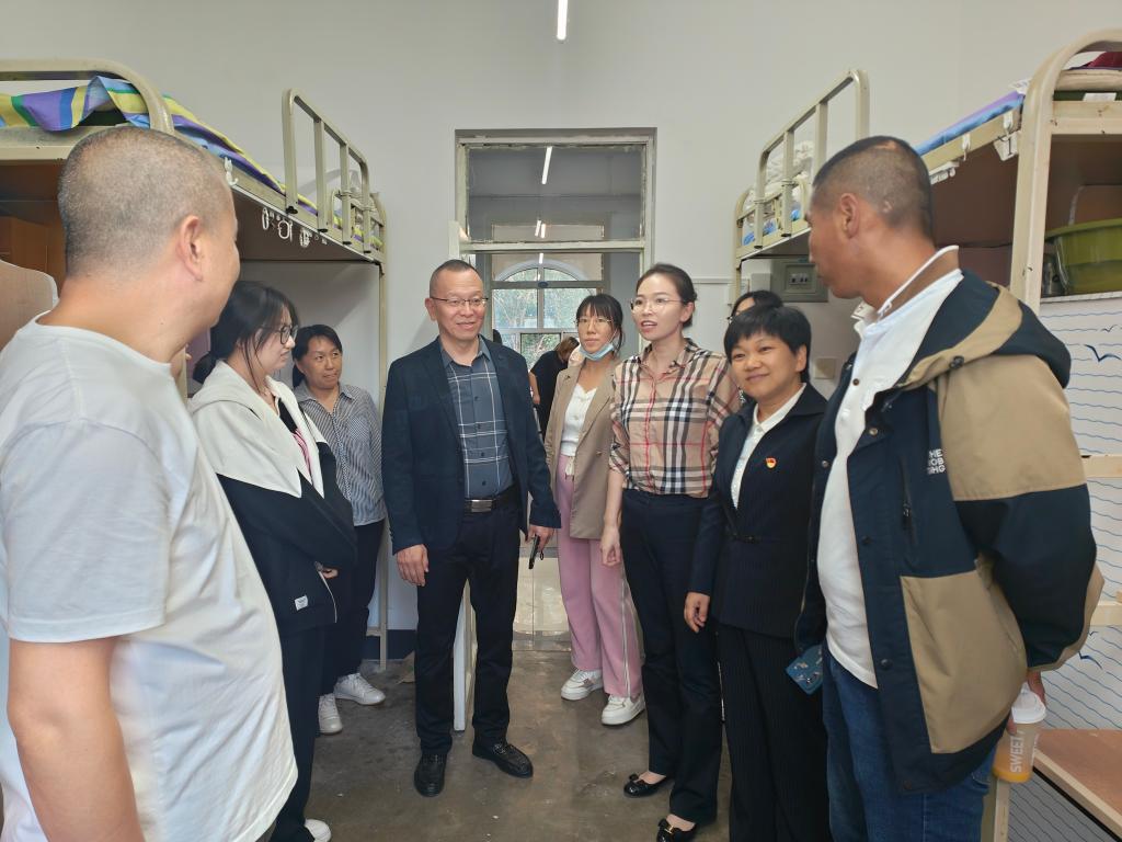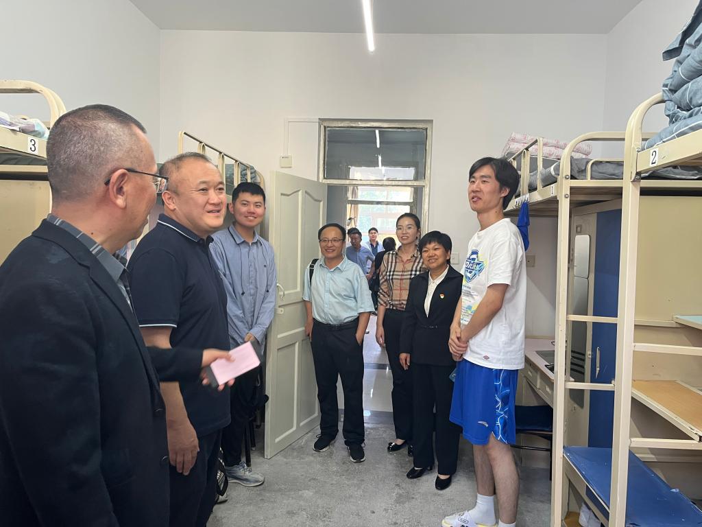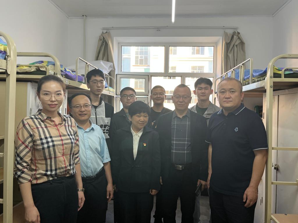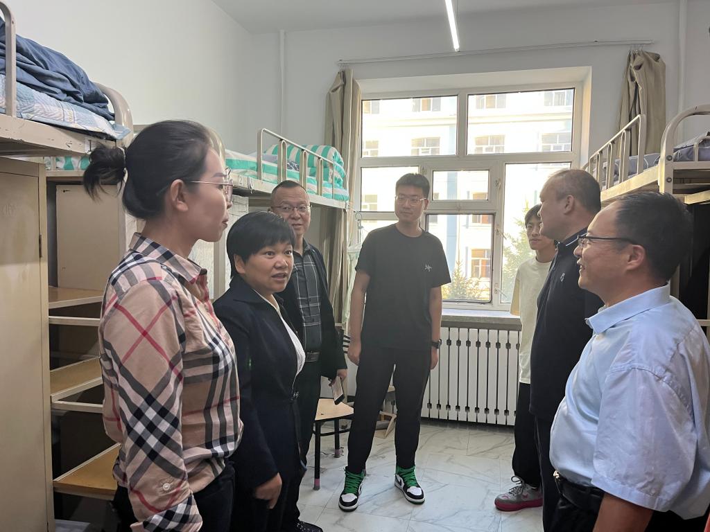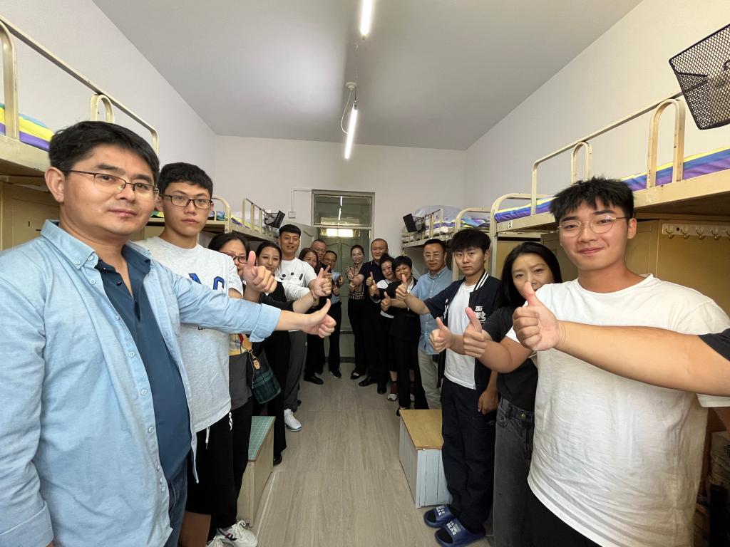 党总支书记孙美晖、院长蒋红雨、党总支副书记张丽丹、副院长周来顺、2023级新生辅导员孙庆斌及2021级辅导员焦瑞,于9月9日下午17时深入新生公寓楼进行走访慰问。