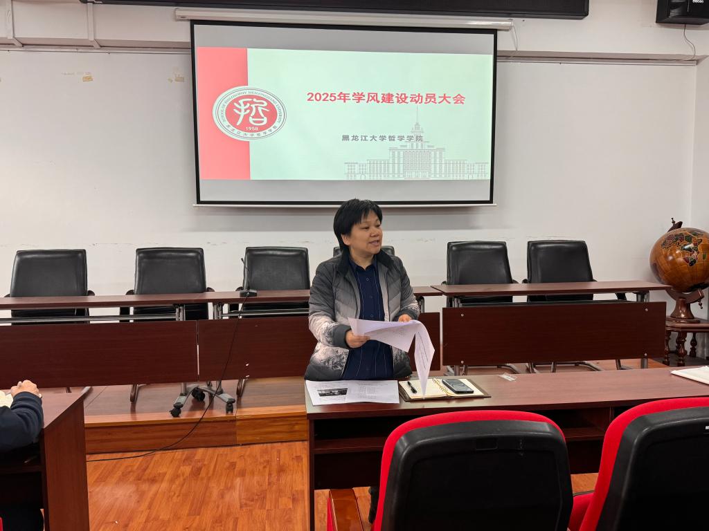 孙美晖书记传达学校全面加强学风建设动员大会精神,并领学《黑龙江大学学风建设年教师“十要十不要”》。她指出,学风建设是提升教育教学质量、培养高素质人才的关键举措,希望全体教职工深刻领会其内涵,严格要求自己,做到“十要”,坚决杜绝“十不要”,以实际行动为学生树立榜样,营造积极向上、严谨笃学的良好教风,为学校高质量发展贡献哲学力量。炸金花单机