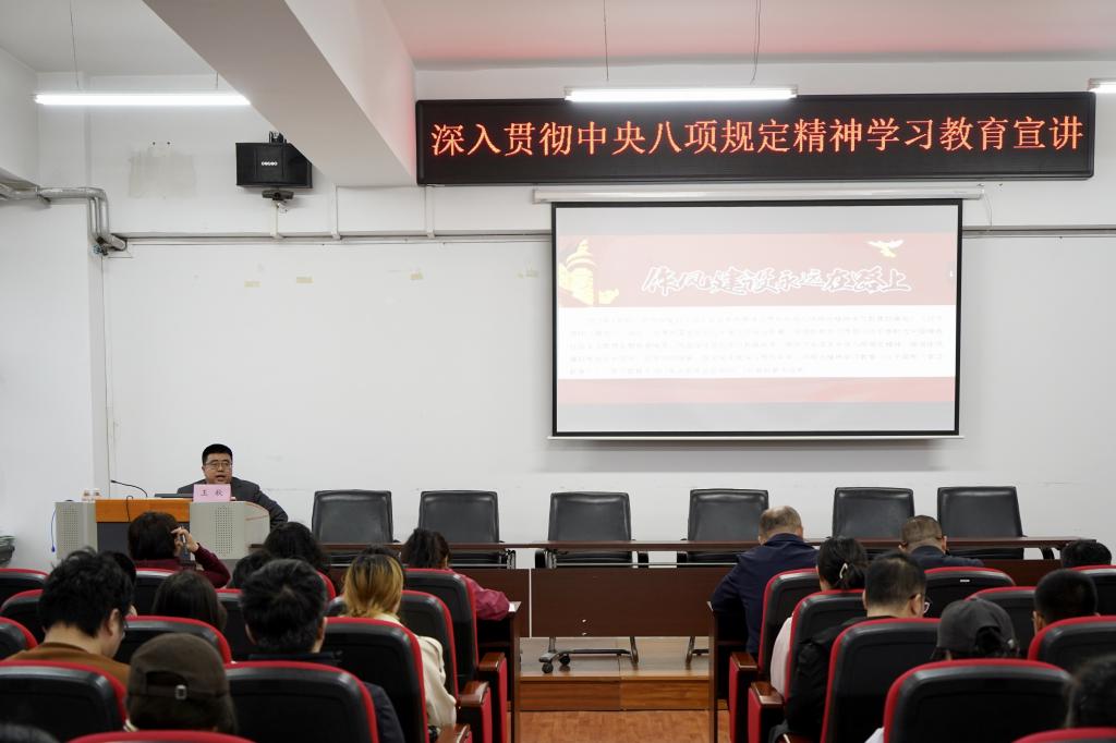 王秋教授以《锲而不舍落实中央八项规定精神,推进作风建设常态化长效化》为题,围绕中国共产党的作风建设的历史源流、全面认识中央八项规定精神的深刻内涵、“学查改立”中一体推进作风建设常态化长效化三个方面进行宣讲,强调要持之以恒推进作风建设,以清正党风、务实政风引领院风向上向善发展。