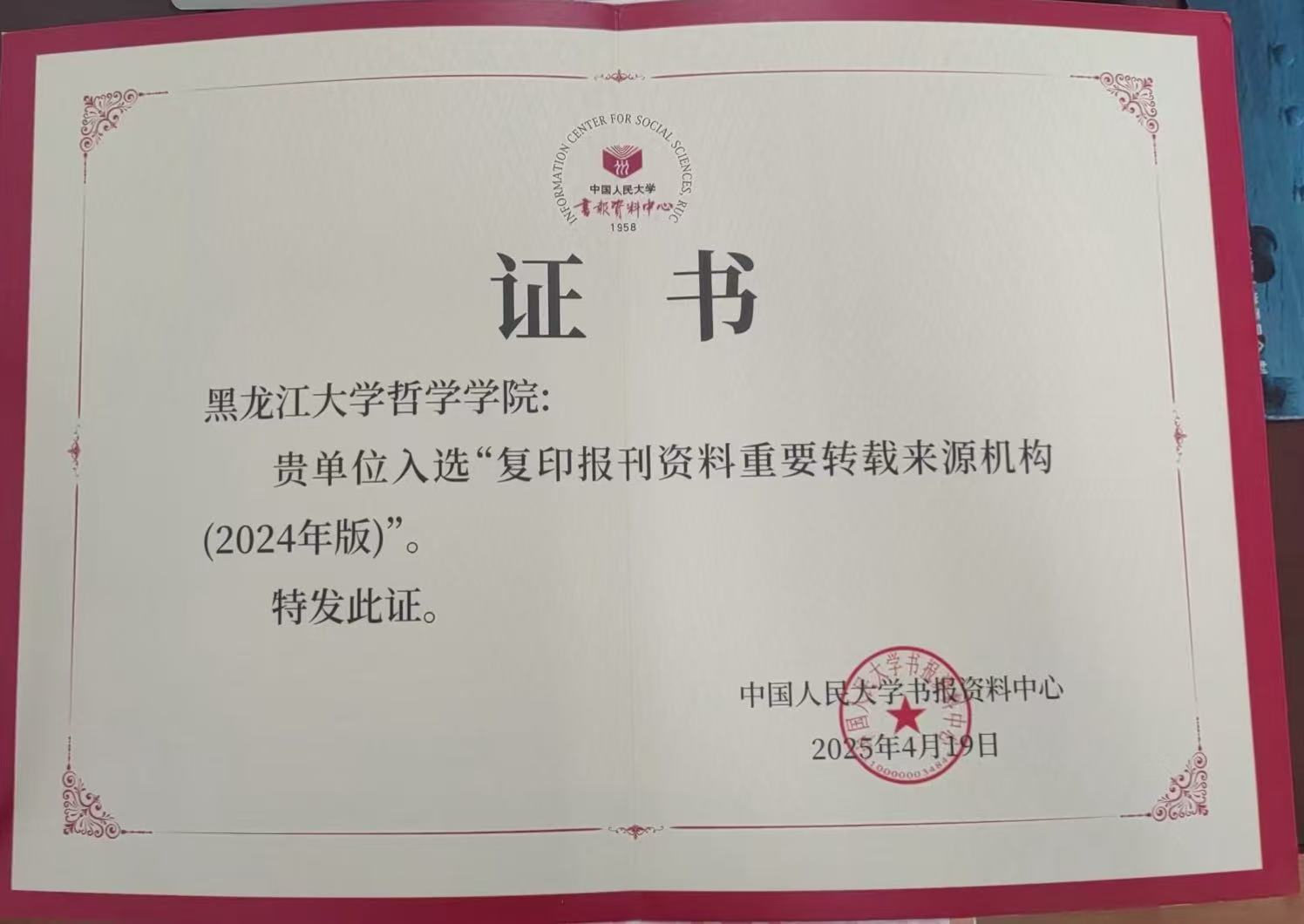 始终坚持"扎根龙江、服务国家战略"的特色发展理念,在马克思主义哲学、文化哲学、中国哲学、伦理学研究等领域取得系列突破性成果。此次入选“复印报刊资料重要转载来源机构(2024年版)”,标志着我院在哲学学科建设、科研创新和社会服务方面迈上新台阶。新学期学院将继续秉持“博学慎思,参天尽物”的校训精神,深耕哲学基础理论研究,拓展跨学科融合创新,培育高水平学术成果,为中国特色哲学社会科学体系建设贡献更多“黑大力量”。(炸金花单机