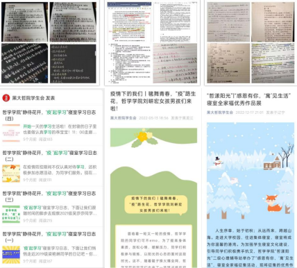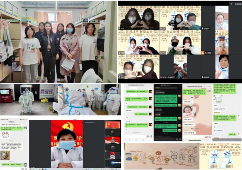 领导、老师多次走访寝室,学生会同学积极配合疫情防控要求,在寝室封控管理期间,担当起全心全意为同学服务的责任,按时按点地为同学们发放饭菜和物资,开展“共克时艰,云端相伴”寝室云走访活动,以志愿者的身份和全体哲院学子共克时艰,云端相伴迎接春暖花开。