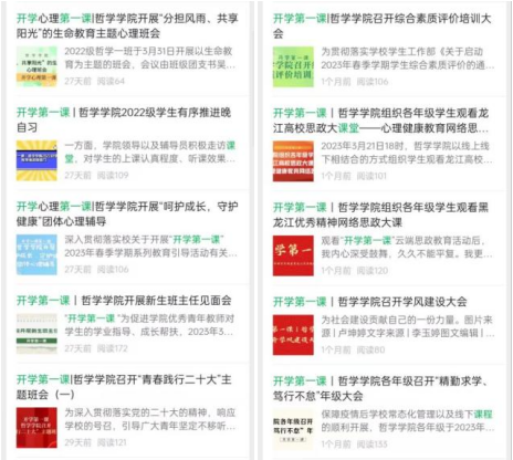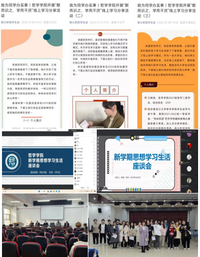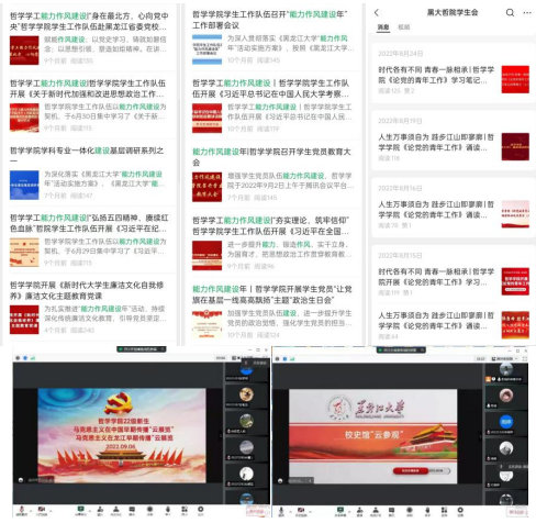 学生多次举行如集中观看、交流会、讲座、党课、校史馆云参观等活动,坚持定期开展党员发展对象、预备党员与入党积极分子、学生干部培训学习会,开设了“哲学学工能力作风建设”等专栏。